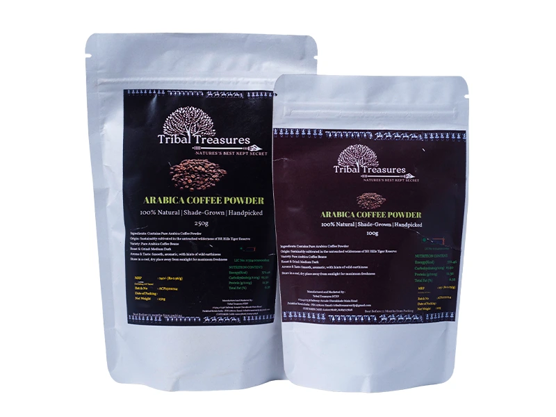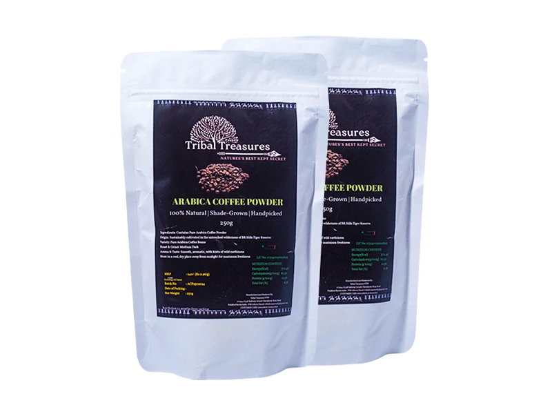 We grow our coffee in BR Hills Tiger Reserve Karnataka in the farms of Soligha Tribal Communities. The arabica coffee plants in BR Hills Tiger Reserve Karnataka is grown in the shades of wilderness and with other herbal plants without pesticides and chemicals. This growing technique makes our coffee a favorite taste among the coffee lovers.